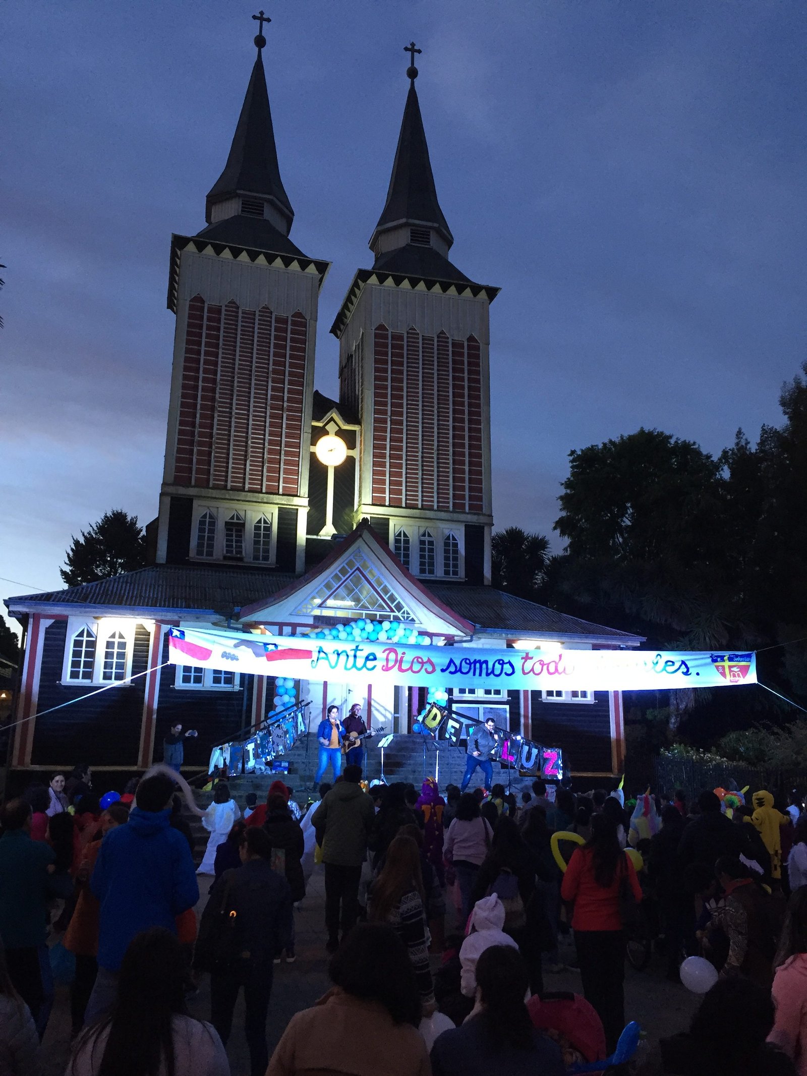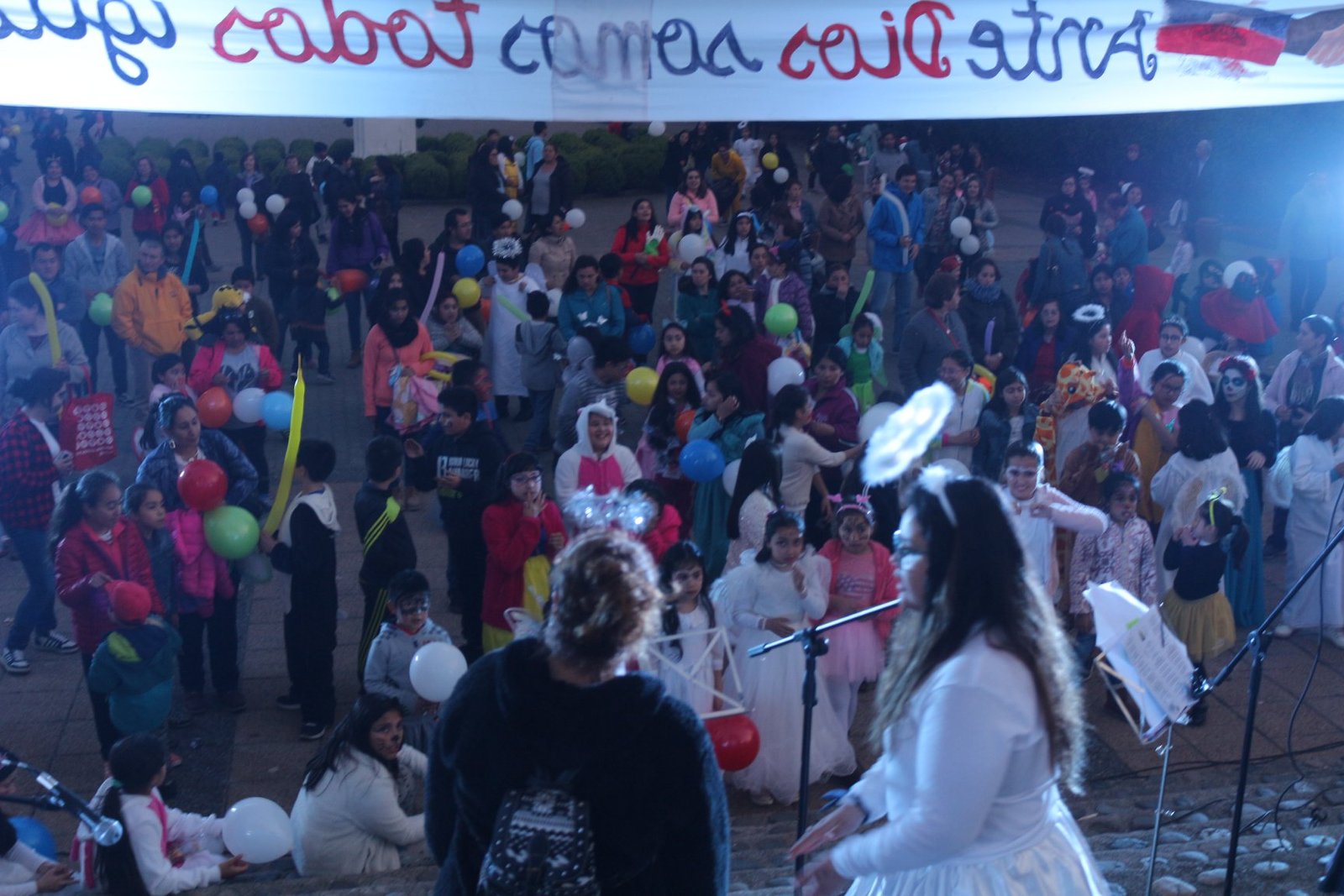 Una gran cantidad de niños y jóvenes, en el frontis del Templo Parroquial, se dieron cita para celebrar la Fiesta de la Luz y la vida, la tarde del 31 de octubre.
